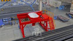 Рабочее место оператора – пост управления – расположено на силовой раме и представляет собой отдельную площадку, с которой осуществляется выполнение всех команд, заложенных в оборудование. Движение портала или тележки раздаточного бункера по порталу осуществляется при помощи джойстика, установленного на панели управления. Но, поскольку работа идёт на высоте, предусмотрена педаль оператора: пока она не нажата — ни портал, ни тележка не двинутся. Случайные перемещения полностью исключены.