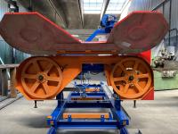 Так, например, шкивы большего диаметра , а именно 620 мм, меньше изнашивают пилы и позволяют получить значительную экономию на них. Ту же цель преследует натяжение полотна с помощью гидронасоса с манометром. Кроме того, оптимальное натяжение положительно влияет на качество получаемого пиломатериала.