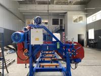 Пиление происходит перемещением пильной рамы с режущим инструментом (ленточной пилой) по неподвижным рельсовы направляющим пилорамы.