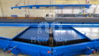 Фермы — ключевые элементы несущих конструкций, рассчитанные на восприятие значительных нагрузок, поэтому для их изготовления применяется предварительно напряжённый железобетон. Это предъявляет повышенные требования к металлоформе — по прочности, жёсткости и точности геометрии.Металлоформа представляет собой неразборную конструкцию треугольного сечения длиной 20 134 мм, шириной 3 825 мм и высотой 790 мм. Габариты изготавливаемого изделия — 17 980 × 3 010 × 300 мм. С торцов силовой рамы установлены упоры для запуска и натяжения арматуры, закрытые защитными кожухами для обеспечения безопасности персонала.