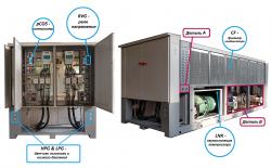 Все модели оснащены двумя контурами хладагента с одним винтовым компрессором на контур. Степень электрозащиты IP54 для всех моделей.