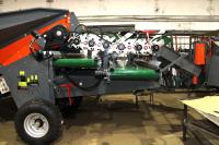 Бункер приемный сортировочный БПС-1640 с дополнительным сортировочным модулем имеет 12 валов шириной 1600 мм и 2 отводящих транспортера. Это позволяет принимать и сортировать на 3 фракции с производительностью 30 тонн в час. БПС-1640 подходит как для использования его и для приёмки урожая во время уборки, так и в линии предпродажной подготовки и фасовки.