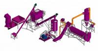 Отходы мясопереработки подаются в бункер агрегата дробильного мясокостного. Из которого измельченные отходы попадают в приемную горловину мясокостного бункера где происходит накопление и при необходимости перемешивание мясокостного фарша. Далее измельченный фарш шнеком подается в насос-измельчитель. Измельченные мясокостные отходы (фарш) и зерновые компоненты в соответствии с рецептурой подаются в смеситель горизонтальный (мясокостный фарш насосом, зерновые компоненты транспортером). Для контроля веса подаваемого в смеситель сырья он оснащен весовым контроллером. Перемешанная смесь транспортером подается в промежуточный бункер и далее в пресс-экструдер.