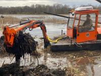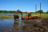 Установка для очистки водоемов от ила, шлама, мусора. Производит работы по углублению дна и укреплению береговой линии. Машина принимает участие в строительстве и эксплуатации гидротехнических сооружений. Производит работы по добыче золотоносных песков, сапропеля, торфа, грязи и т.д.