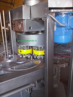 | закаточная машина Б4-КЗК-79Машина предназначена для герметичного укупоривания заполненных продуктом круглых металлических консервных банок.Машина выполняет следующие функции: герметичная укупорка металлических банок, маркировка крышек и счет банок. Область применения – устанавливается в линиях изготовления консервов и пресервов. Отличительные особенности. Приемный транспортер со шнеком для деления произвольного потока банок по шагу. Магазин для автоматической подачи крышек. Маркирование крышек. Счет банок. Блокировки: нет банки – нет крышки, мало крышек – стоп машина. Центральная система смазки. Детали, контактирующие с банкой и крышкой, выполнены из нержавеющих материалов. Полная защита от движущих частей. Электрооборудование во влагозащищенном исполнении ТЕХНИЧЕСКАЯ ХАРАКТЕРИСТИКА Производительность, б/мин. ………………………………… 80-160 Размер банок, мм: диаметр / высота ……………………………. 50-106 / 35-155 Толщина материала, мм.: жести / алюминий…………………… 0,18-0,30 / 0,25-0,35 Номинальная мощность, кВт ……… 3,0 Габаритные размеры, мм. …………………………………… 1900х1071х2070 Масса, кг. …………………… 1900 Поставщик: Продмашсервис Цена: Договорная | |||||||||||||